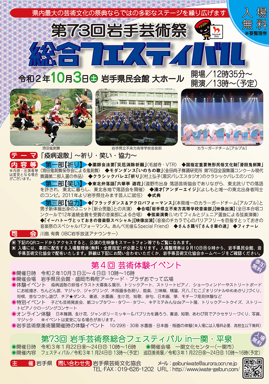 当日は、岩手県芸術文化協会のホームページからも、舞台公演の模様をご覧頂けます。